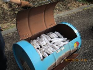 ご利用者様が毎年楽しみにしている焼き芋を食べる会を開催しました!さつまいもの種類は「紅はるか」。焼き芋を焼く専用のドラム缶で約40分かけ、炭火でゆっくり焼きました。ホカホカの焼き芋を食べて「甘いね」「美味しいね」「あったかいね」と、とびきりの笑顔で召し上がっていました。