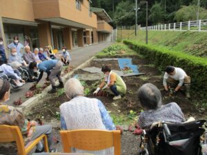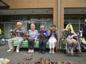 さつまいもを収穫しました!ご利用者様は収穫の様子を見たり、笑顔でお芋を手にしたり、秋を感じられていました😆